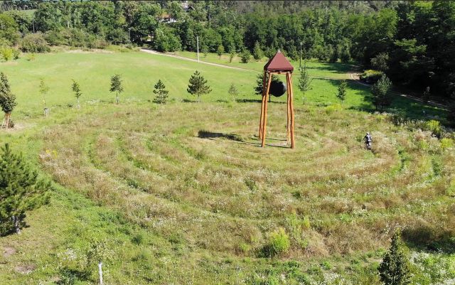 Uprostřed kruhu naleznete rovněž labyrint, vysekanou a vyšlapanou cestičku, kterou určitě využijte k příchodu k zavěšenému srdci.
